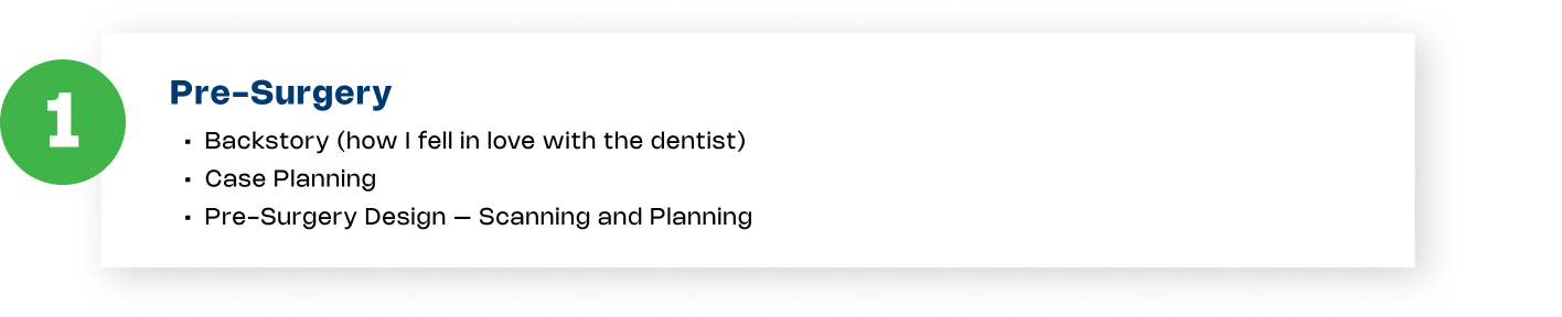 When we started this project, we wanted a way for patients to get a chance to see EVERYTHING before they must go through it themselves. This section of The Smile Mentor gives you access to each appointment before the surgery, such as case planning, scanning, and every other appointment I had to go through personally before the day of surgery. It wasn’t easy to commit to all the “personal and up-close” portion of this project, but it was absolutely necessary to give you the FULL story and not a sales video. Each of the full videos in this series have the chapters already booked out for you if you are short on time.